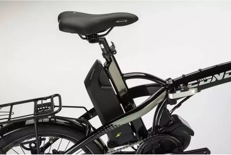 La bicicleta Conor E4 E-Folding E5000 2021 cuenta con un motor Shimano DU-E5000 de 250W de potencia y un par de 40Nm, que se traduce en una velocidad máxima de 25 km/h y una autonomía suficiente para tus desplazamientos semanales.