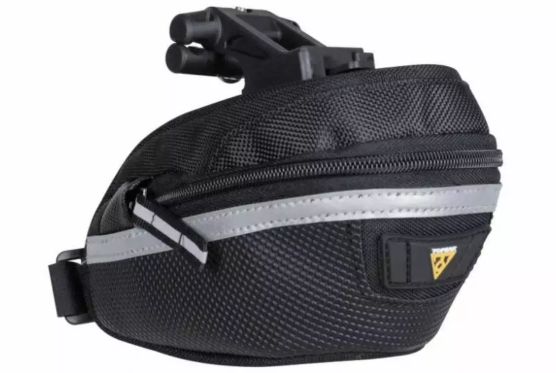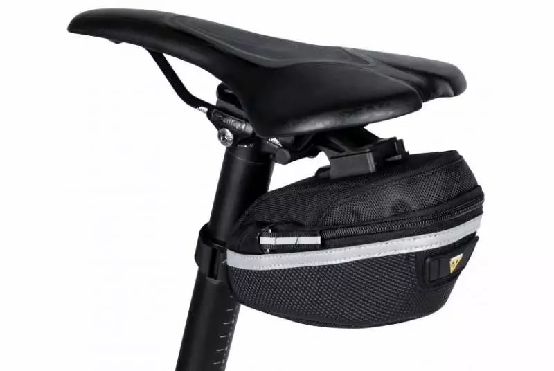 Bolsa de sillín Topeak Wedge Pack II, peso ajustado y diseño compacto pero muy bien optimizado al momento de llevar las herramientas mínimas necesarias para pequeñas reparaciones en tus salidas de día.