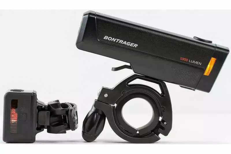El juego de luces de ciclismo Bontrager Ion Pro RT y Flare Rt está diseñado para que puedas ver gracias a su foco de 1300 lúmenes y aumentar tu seguridad para que te vean bien con su luz trasera, de ratio de 2 km.