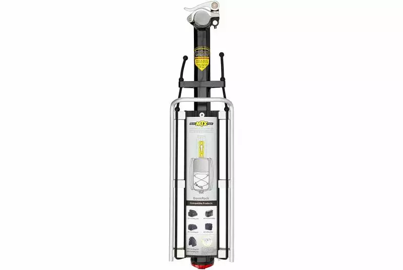 Para uso en MTB o desplazamientos pesados. El mecanismo QR es seguro y fácil de usar. Capacidad de carga de 9 kg. Compatible con todos los baúles MTX. Incluye dos amortiguadores de goma y reflector de seguridad.