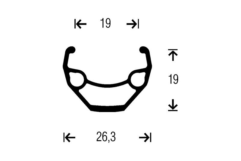 - – Llanta negra Gurpil de 27,5″ con 19mm de perfil interior, 26,3mm de exterior y 19mm de altura