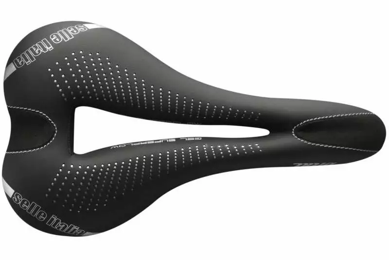 El inserto Gel proporciona una agradable sensación de acolchado y una elevada capacidad de absorción de impactos, pero cuidando la firmeza y la morfología plana característica de un sillín de rendimiento. El orificio central SUPERFLOW reduce al mínimo la presión y el adormecimiento en de la zona perineal.